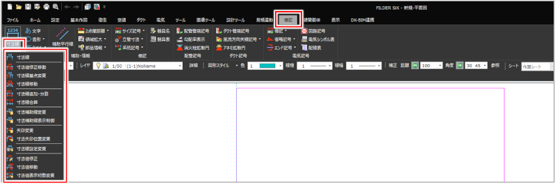 寸法補助線の表示・非表示を切り替える場合寸法補助線の表示・非表示を切り替える場合
