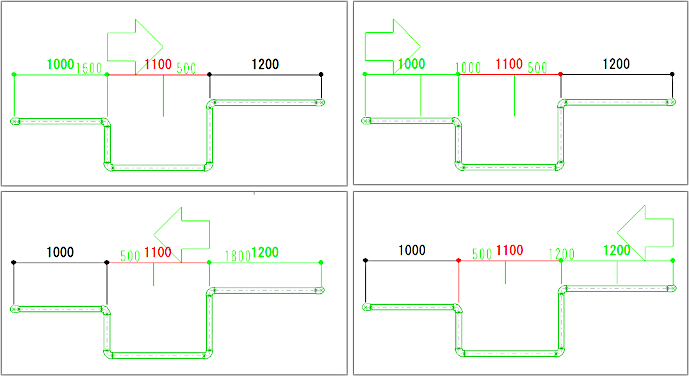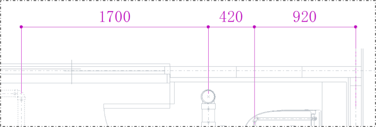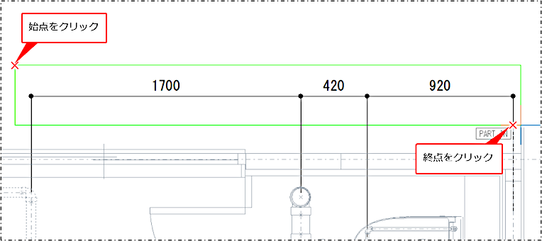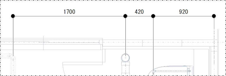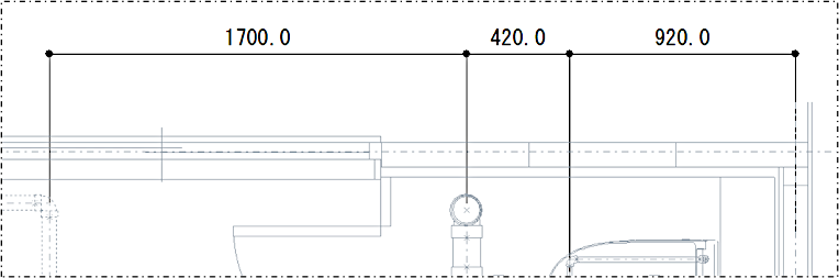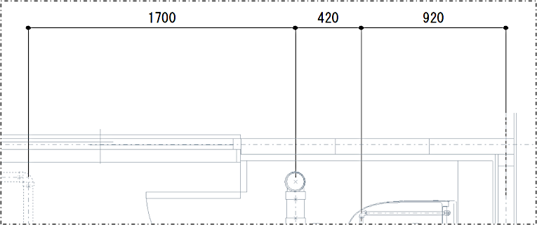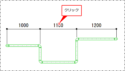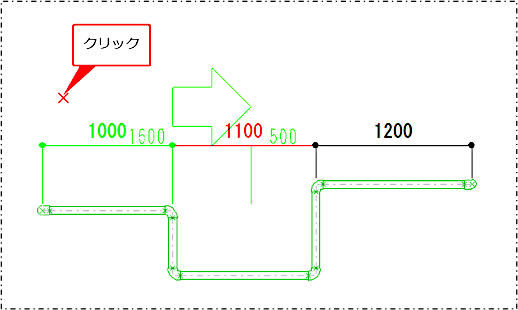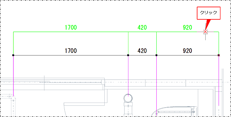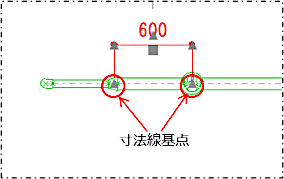 寸法線の基点が変更され、新たな基点から寸法線が作図されます。