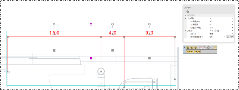 ミニツールバーを使って寸法線のみを選択することもできます。寸法線を1本クリックし、 |