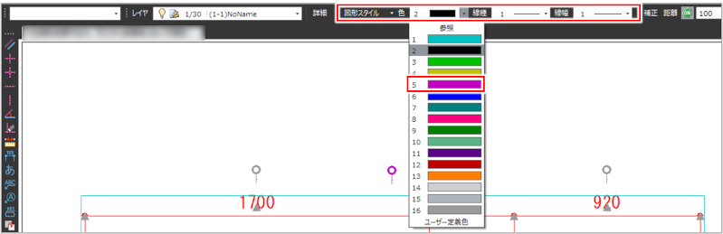 寸法線、寸法値(文字)のスタイルなどを変更します。