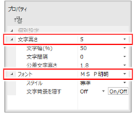 例:[文字高さ]を「3」から「5」に変更、[フォント]を[MS ゴシック]から[MS P明朝]に変更