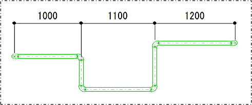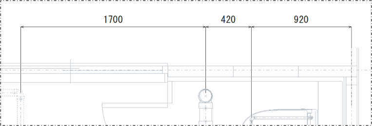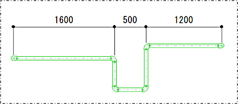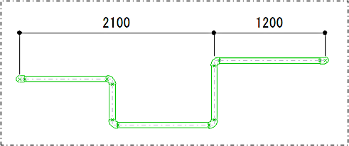 配管・ダクト・電気に寸法線が描かれている場合に、寸法値を変更することによって配管部品やダクト部品を伸縮移動し、寸法線の長さと寸法値を変更します。