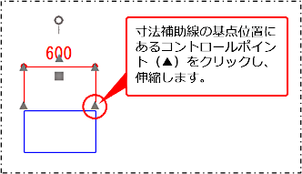 コントロールポイントで寸法補助線を1本ずつ伸縮することもできます。