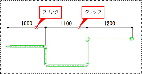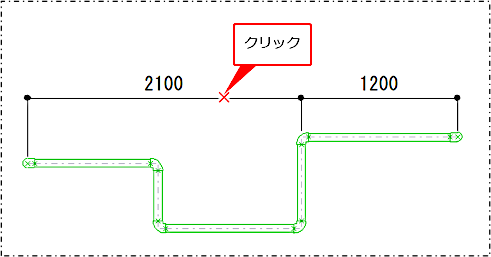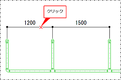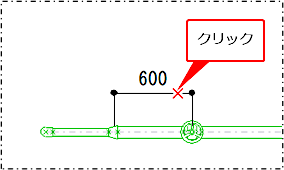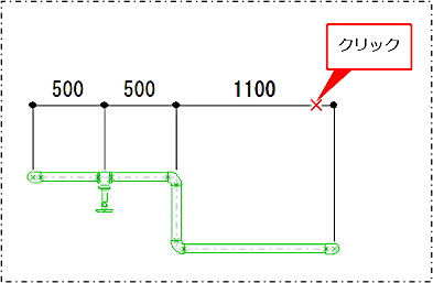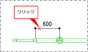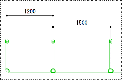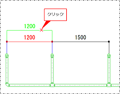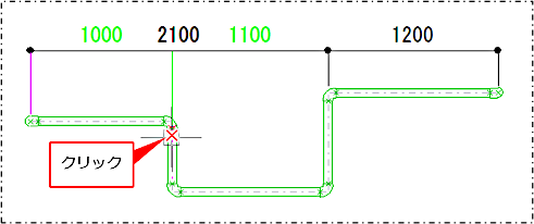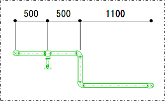 配管の継手などを基点にして作図した寸法線は、配管と連動(リンク)された状態になっています。