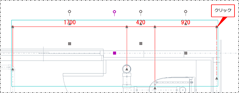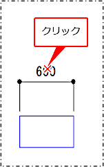 寸法矢印上にあるコントロールポイント(▲)を1つクリックします。