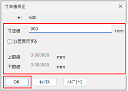寸法値を変更しても、実際に寸法が変わるわけではありません。寸法値の文字のみ変更します。