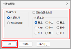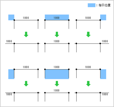 [処理タイプ]で[移動処理]を選択した場合に、寸法値を配置するときの基点を選択します。 |