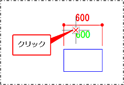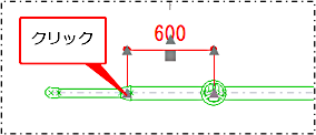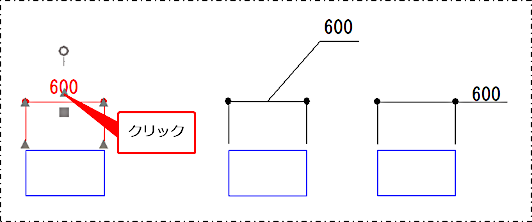 仮表示された寸法値や矢印を確認し、寸法線の伸縮方向をクリックします。