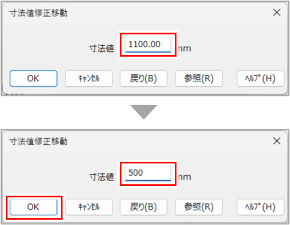 寸法値を変更して部品を伸縮移動する(寸法値修正移動)