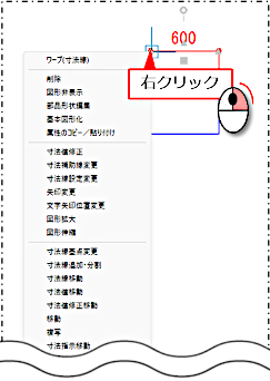 コマンドキャンセルの状態で、変更する寸法線をクリックします。