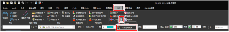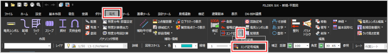 [電気]タブ>[エンド記号]プルダウンメニュー>[エンド記号編集] [傍記]タブ>[エンド記号]プルダウンメニュー>[エンド記号編集] |