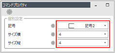 ここでは、例として[記号]で[記号2]を選択し、[サイズ横][サイズ縦]に「4」を入力します。
