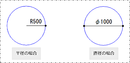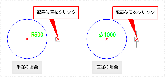 円の半径または直径の寸法線を作図する場合円の半径または直径の寸法線を作図する場合