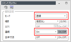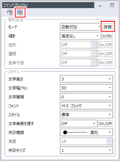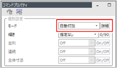 [コマンドプロパティ]の[モード]で[自動付加]を選択します。