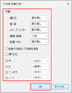 寸法線を自動で作図する対象を選択して確定した後、寸法線を追加する場合はチェックを付けます。 |