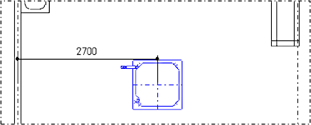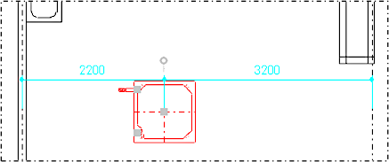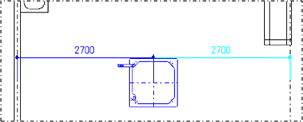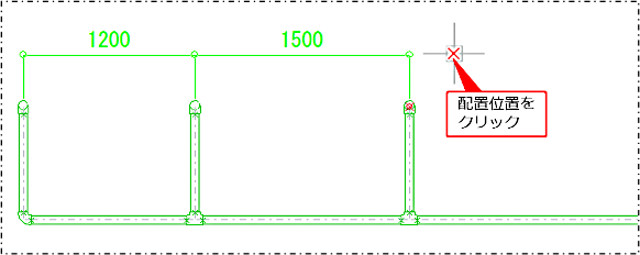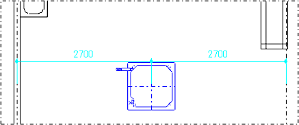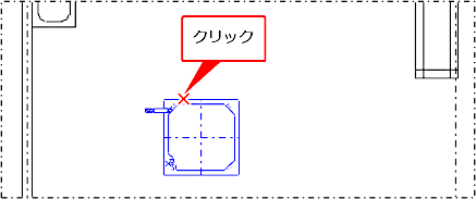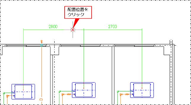 機器の近くにある通り芯までの仮寸法線が表示されます。