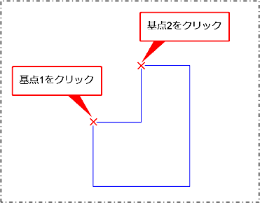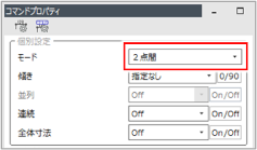 [コマンドプロパティ]の[モード]で[2点間]を選択します。