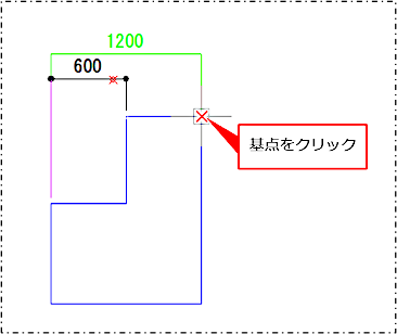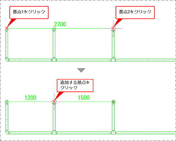 [自動付加後に寸法線を追加]にチェックを付けた場合は、寸法線の基点や自動付加の対象とならなかった基本図形を手動で追加できます。 |