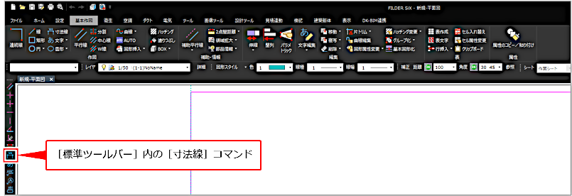 [寸法線]コマンドは、[標準ツールバー]からも選択できます。