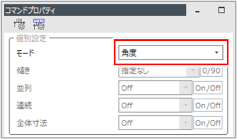 [コマンドプロパティ]の[モード]で[角度]を選択します。