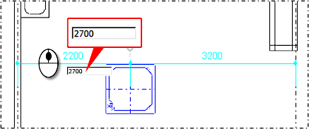 マウスカーソルを仮寸法線上に合わせ、変更する数値を入力します。