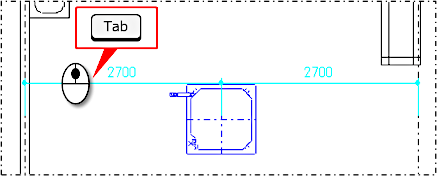 マウスカーソルを仮寸法線上に合わせ、[Tab]キーを押します。