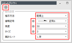 矢尻の長さを入力します。 [省略記号]で[記号1]~[記号5]を選択した場合に設定できます。