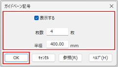 - 続けてガイドベーン記号を配置する場合は、設定して[OK]ボタンをクリックします。