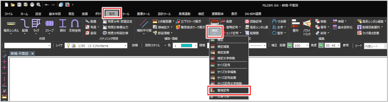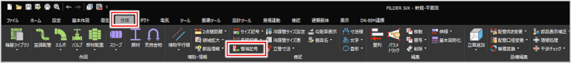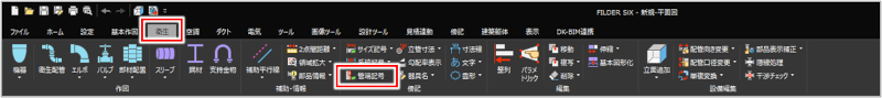 [衛生]タブ>[管端記号] [空調]タブ>[管端記号] [電気]タブ>[傍記]プルダウンメニュー>[管端記号] [傍記]タブ>[配管管端記号] |