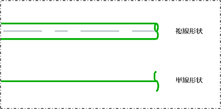 配管管端記号の形状を変更する場合は、[設定]タブの[配管設定]コマンドをクリックして実行し、[単線/複線]タブの[管端記号偏平率]で設定します。 |