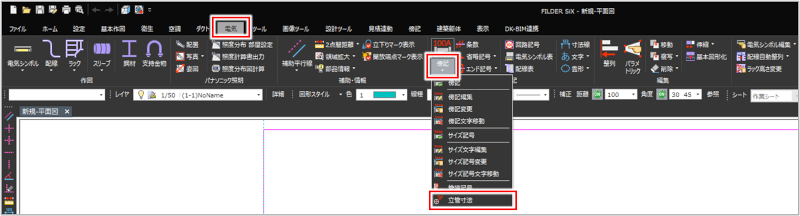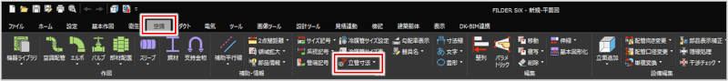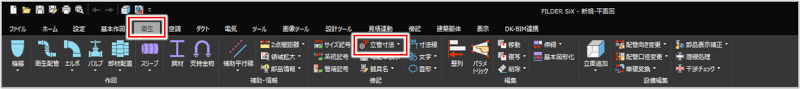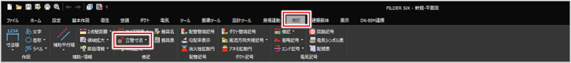 [衛生]タブ>[立管寸法] [空調]タブ>[立管寸法] [ダクト]タブ>[立管寸法] [電気]タブ>[傍記]プルダウンメニュー>[立管寸法] [傍記]タブ>[立管寸法] |