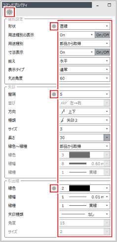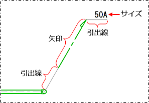 立管寸法を引き出す角度を、0~90の範囲で入力します。 「0」を入力すると、自由な角度で引き出し線を配置できます。 |
