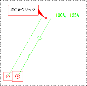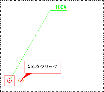 配管またはダクト上で引き出し線の始点をクリックします。