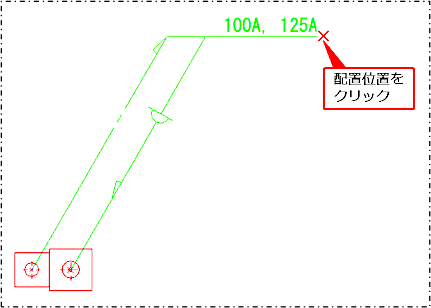仮表示を確認し、立管寸法の配置位置をクリックします。
