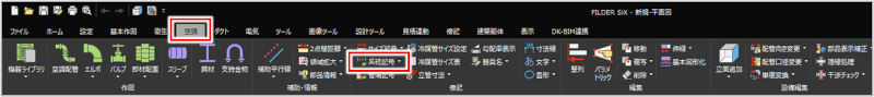 系統記号は、配管用途マスター、ダクト用途マスターで用途名称ごとに系統記号を設定している場合に表示されます。