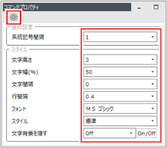 系統記号の文字と図形が重なった場合に、文字の背景を隠すときは[On]を選択します。 [On/Off]ボタンをクリックすると、[On]と[Off]が交互に切り替わります。 |