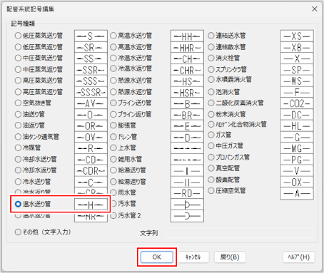 [配管系統記号編集]ダイアログが表示された場合[配管系統記号編集]ダイアログが表示された場合