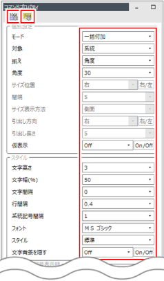 [衛生]タブ>[系統記号] [空調]タブ>[系統記号] [ダクト]タブ>[系統記号] [傍記]タブ>[系統記号] |