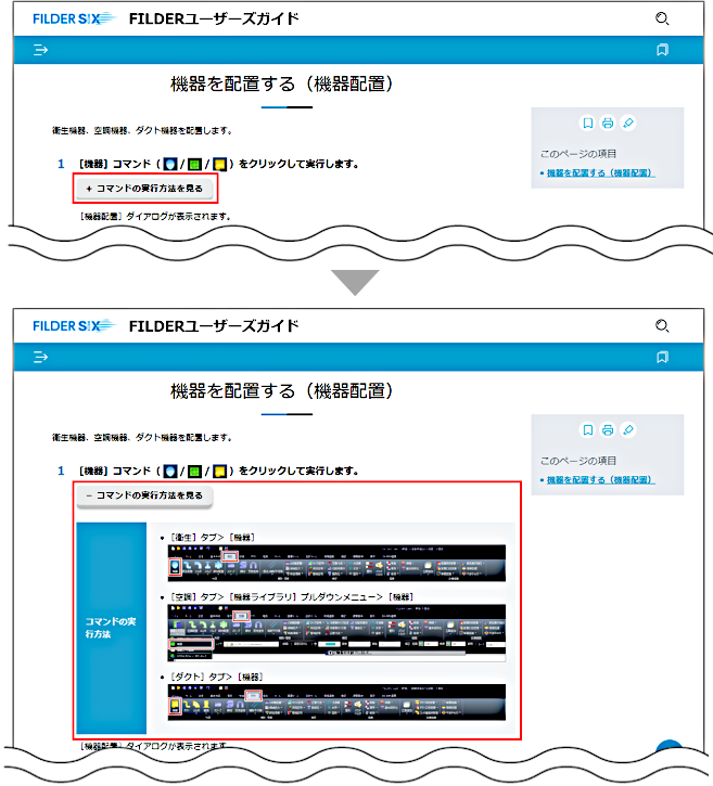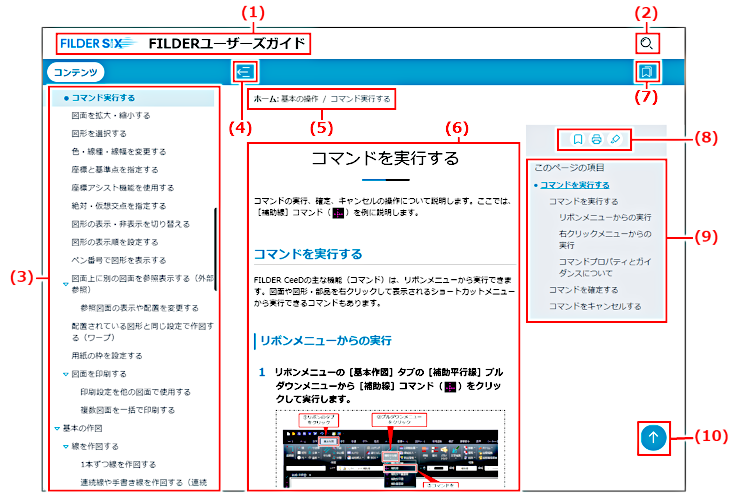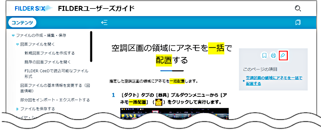 現在開いているマニュアルページの記載位置を確認できます。 |