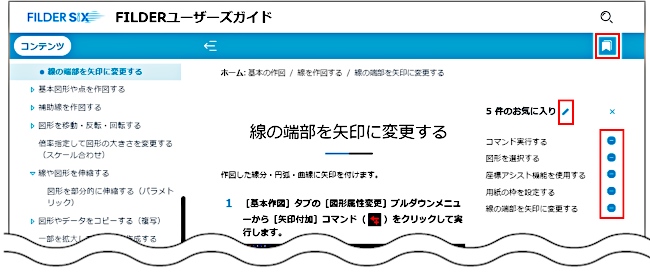 (お気に入りとして設定)をクリックすると、表示しているマニュアルページをお気に入りに登録できます。