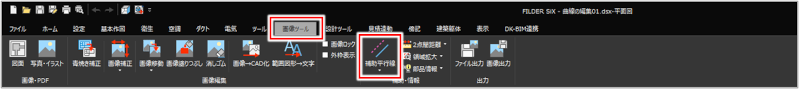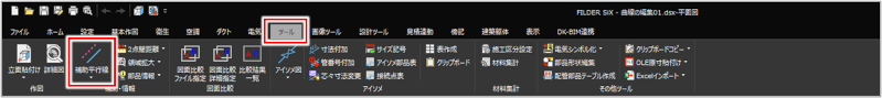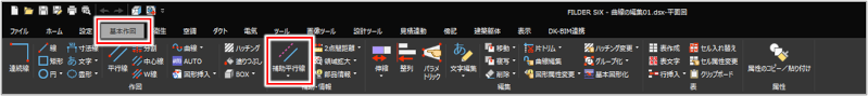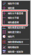 [補助平行線]プルダウンメニューから補助線メニューを開き、目的のコマンドをクリックして実行します。
