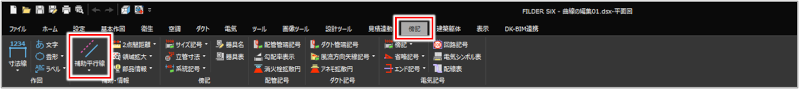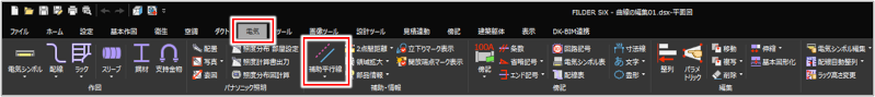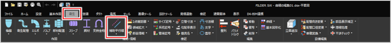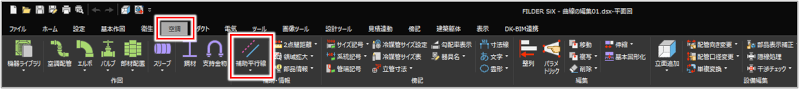 [ホーム]タブ>[補助平行線]プルダウンメニュー [基本作図]タブ>[補助平行線]プルダウンメニュー [衛生]タブ>[補助平行線]プルダウンメニュー [空調]タブ>[補助平行線]プルダウンメニュー [ダクト]タブ>[補助平行線]プルダウンメニュー [電気]タブ>[補助平行線]プルダウンメニュー [ツール]タブ>[補助平行線]プルダウンメニュー [画像ツール]タブ>[補助平行線]プルダウンメニュー [傍記]タブ>[補助平行線]プルダウンメニュー [建築躯体]タブ>[補助平行線]プルダウンメニュー |