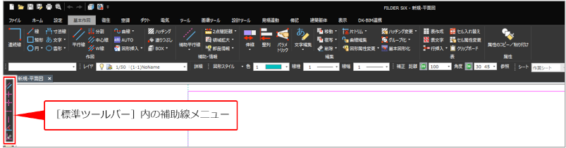補助線メニューは、複数のタブから開くことができます。作図に便利なタブからメニューを表示してください。