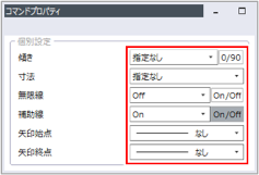 設定項目は[基本作図]タブの[線]コマンドと同様です。詳しくは、以下を参照してください。