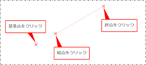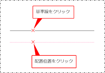 基準となる線を指定し、同じ長さの補助平行線を描きます。