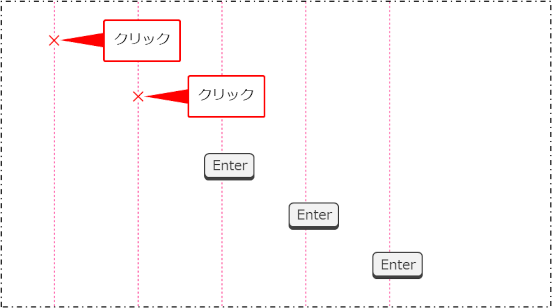 補助線(無限線)を等間隔で連続作図する場合は、2本目以降の作図後に[Enter]キーを押します。