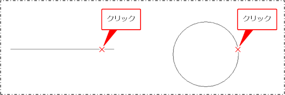 コマンドキャンセルの状態で、補助線にする線をクリックします。