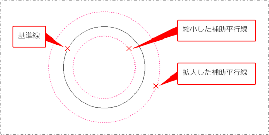円を指定して拡大・縮小した補助平行線を描くこともできます。 |