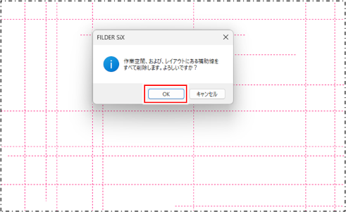 補助線を描こうとすると「補助線指定領域外です」と表示される場合は、補助線の作図領域が指定されています。自由な位置に補助線を描くには、領域を解除してください。