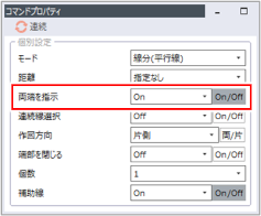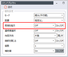 [コマンドプロパティ]の[両端を指示]が[On]になっていることを確認します。
